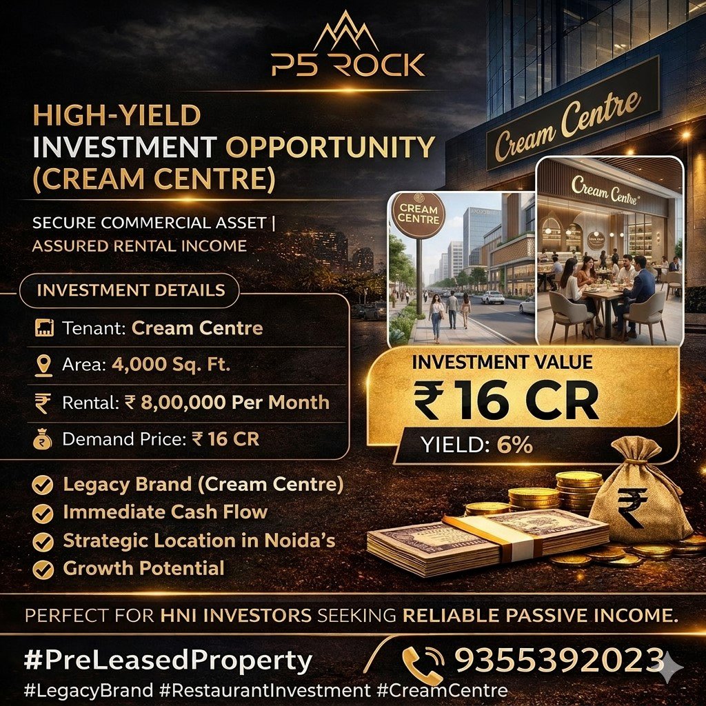 Own a prime commercial asset leased to Cream Centre, a well-established legacy restaurant brand. This investment delivers immediate rental income, strong brand credibility, and long-term growth potential in one of Noida’s most promising commercial locations.