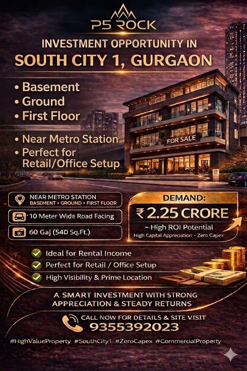 This property combines location strength + flexible usage + appreciation potential, making it a rare opportunity in South City 1. With increasing commercial demand in Gurgaon, this asset is positioned for strong future value growth.