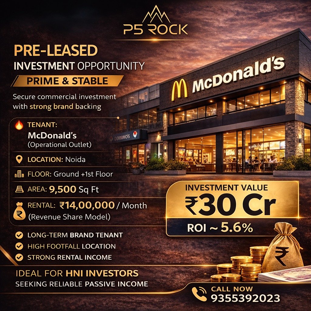 Curated by P5 Rock, this asset offers stable rental income with brand-backed security, making it an excellent choice for HNI investors seeking reliable passive income.