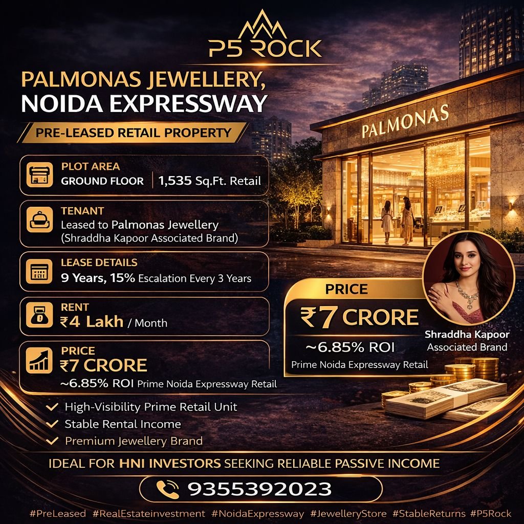Invest in a premium ground-floor retail asset leased to Palmonas Jewellery, a fast-growing jewellery brand associated with Shraddha Kapoor.