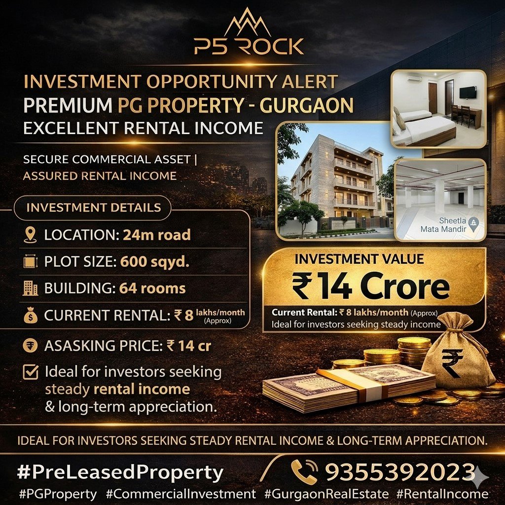 This PG property offers immediate rental income with scalability. Gurgaon’s growing workforce and student demand ensure high occupancy rates, making it a strong cash-flow asset with appreciation upside.