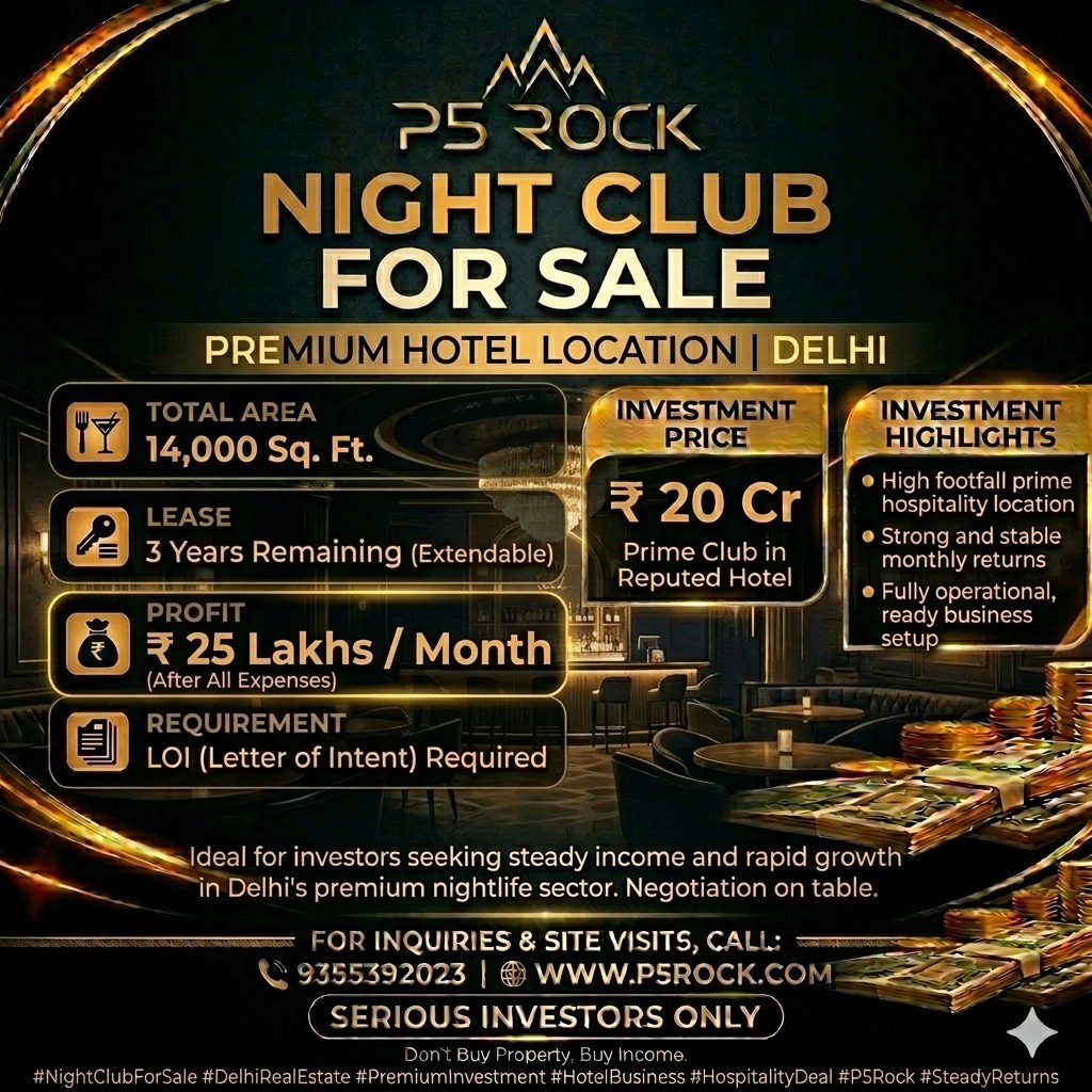 Delhi’s premium nightlife industry continues to see strong demand driven by urban consumers and luxury hospitality growth. This opportunity combines location advantage, operational readiness, and consistent revenue—making it suitable for investors looking for both income and asset appreciation.